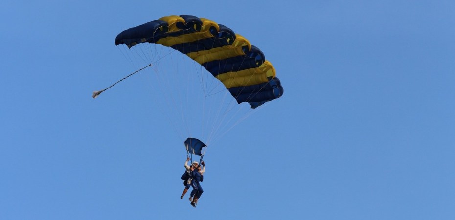 “It’s the thrill of it,’ she says. “You go up, and then that door opens and the wind starts to come through. You are strapped to this guy and he slides you out. Suddenly there’s a touch on your head, and vroom, you’re away. You free-fall. You free-fall for a long time.”