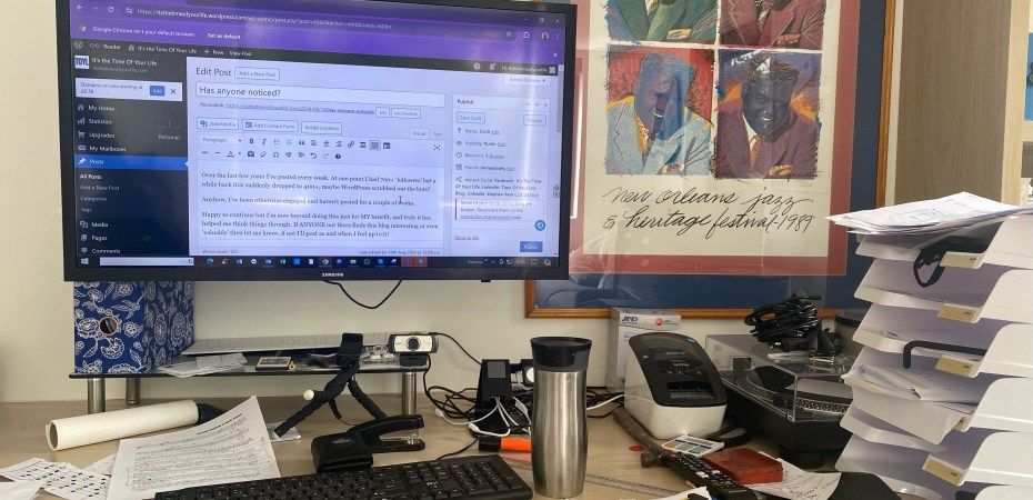 Over the last few years I’ve posted every week. At one point I had 700+ ‘followers’ but a while back this suddenly dropped to 400+, maybe WordPress scrubbed out the bots?